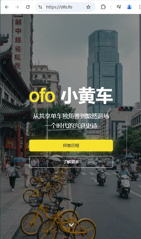 ▲ 官网 https://ofo.fo/ 现在依然能打开,域名很像单车,可惜了。